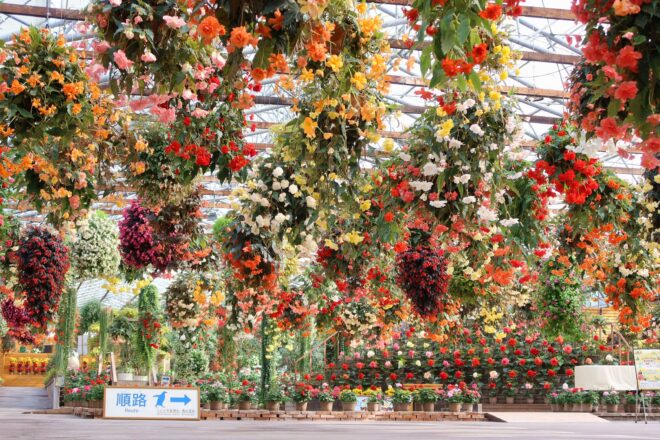 3月30日 晴れ センターハウスの花の様子です。 当園のメインの花「ベゴニア」が最盛期を迎え、温室内が一段と華やかです。 最盛期は5月中くらいまでです。ぜひこの時期のベゴニアをご覧ください。