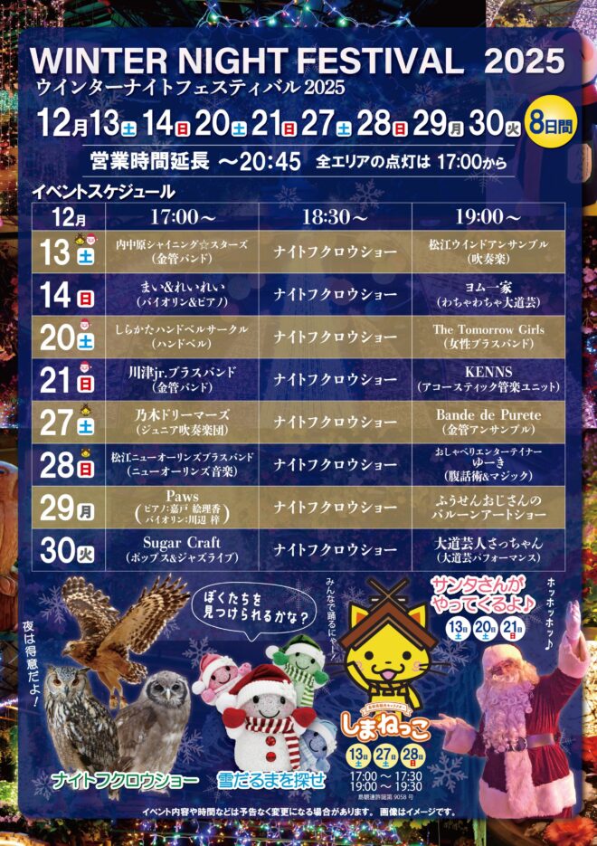 島根県観光キャラクター「しまねっこ」が12月13日(土)、27日(土)、28日(日) の3日間やってきます!